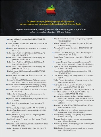 • Biagioli, Mario, Ο Γαλιλαίος αυλικός (ISBN: 978-960- • Feynman, Richard P., Το νόημα των πραγμάτων (ISBN: