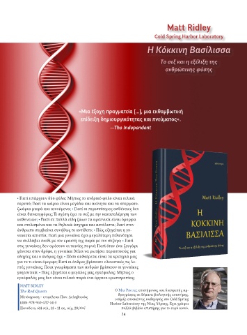 The Red Queen Ο ΜαΤ ρίΝΤΛει, επιστήμονας και διαπρεπής αρ-