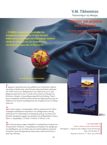 απειροστικού λογισμού, ο συγγραφέας επιστρέφει στα προηγούμε- Stories about maxima and minima